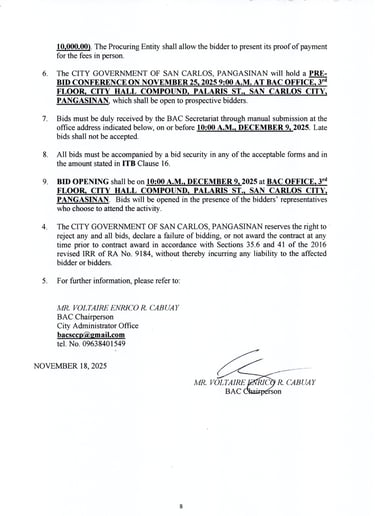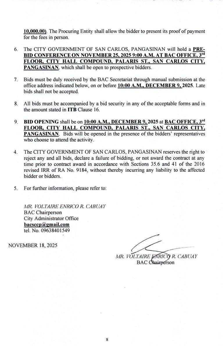 Submission Deadline: on or before 10:00 AM, December 9, 2025 (late bid shall not be accepted)