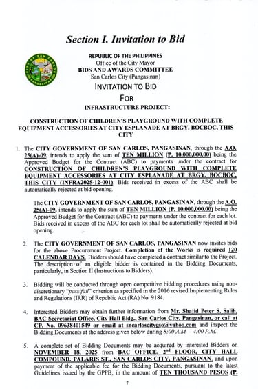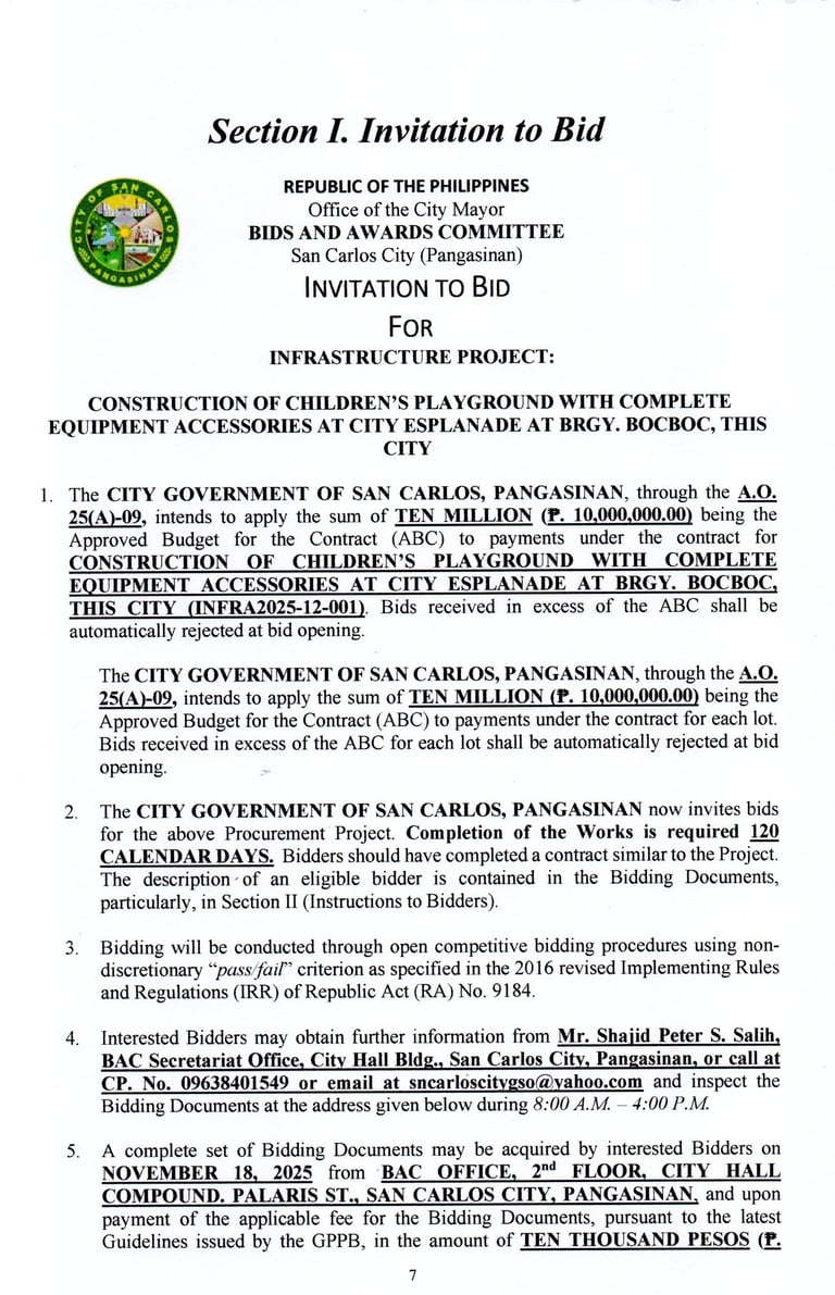 The CITY GOVERNMENT OF SAN CARLOS invites all PhilGEPS-registered bidders to participate in the procurement of: