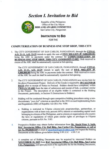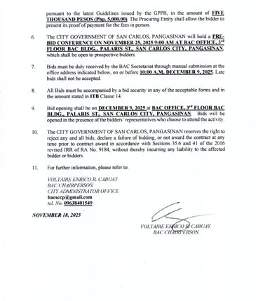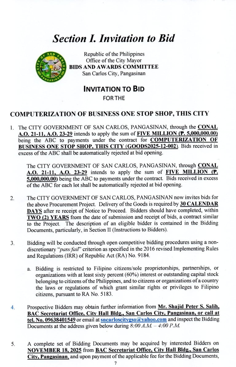 The CITY GOVERNMENT OF SAN CARLOS invites all PhilGEPS-registered bidders to participate in the procurement of: