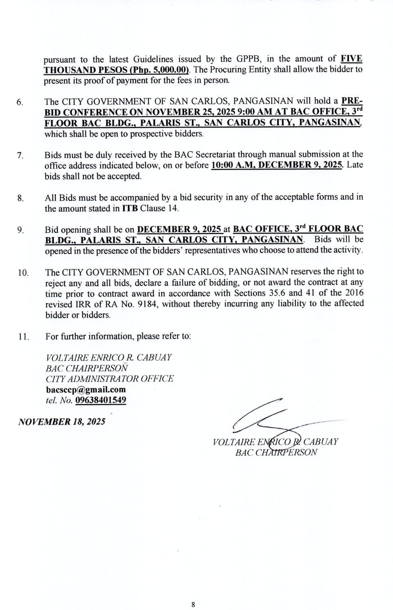 Submission Deadline: on or before 10:00 AM, December 9, 2025 (late bid shall not be accepted)