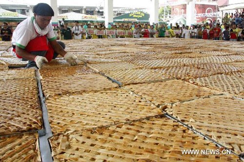 The huge mango pie was displayed for public viewing in the city plaza on April 26, 2011. After public viewing, it was shared to more than 1,200 residents of the city.